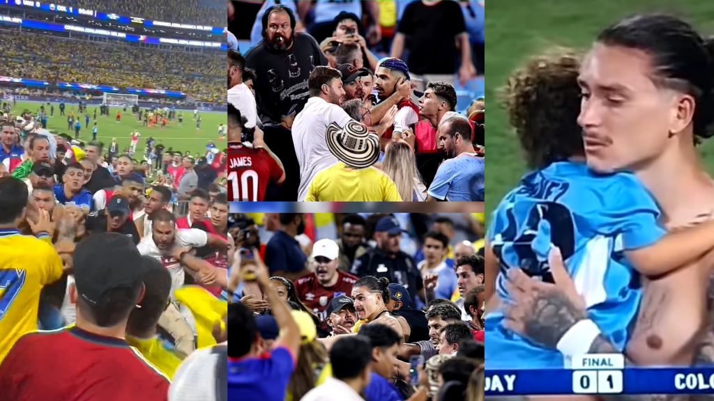 After defeat to Colombia, Uruguayan players entered the stands at Bank of America Stadium and began to throw punches. Liverpool forward Darwin Nunez amongst those at the forefront. pic.twitter.com/VE3unKObSa